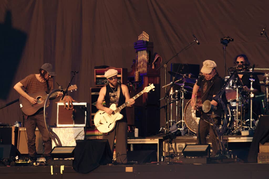 When the golden hour arrived, illuminating the “Love Earth” motif behind the stage, so did Neil Young. Opening with ‘Ambulance Blues’, it was jagged brutalism from the outset, his entrusted electric guitar Old Black orchestrating the likes of ‘Cowgirl In The Sand’, ‘Cinnamon Girl’ and ‘Fuckin’ Up’. Each rendition was as gritty and fist-clenching as his dogged activism and his general belligerent self. But the typically unpredictable icon has favoured crowd pleasers on this tour, like surprise inclusions in ‘Southern Man’ and ‘After The Gold Rush’. There was still no appearance of ‘Heart Of Gold’, predictably.
