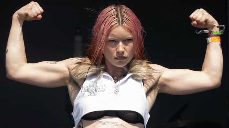 Rhian Teasdale is grinning down the camera, sporting pimped up boxing gloves, armpit hair, and bleached eyebrows. “You should be careful, do you catch my drift? ’Cause what I really want to know is can you catch these fists?” she challenges on Wet Leg’s big return single ‘catch these fists’. It’s a left turn from the group’s Wicker Man-meets-Cottage Core aesthetic of their debut album era. It’s also a raging “F You” to the people who said they wouldn’t be back.