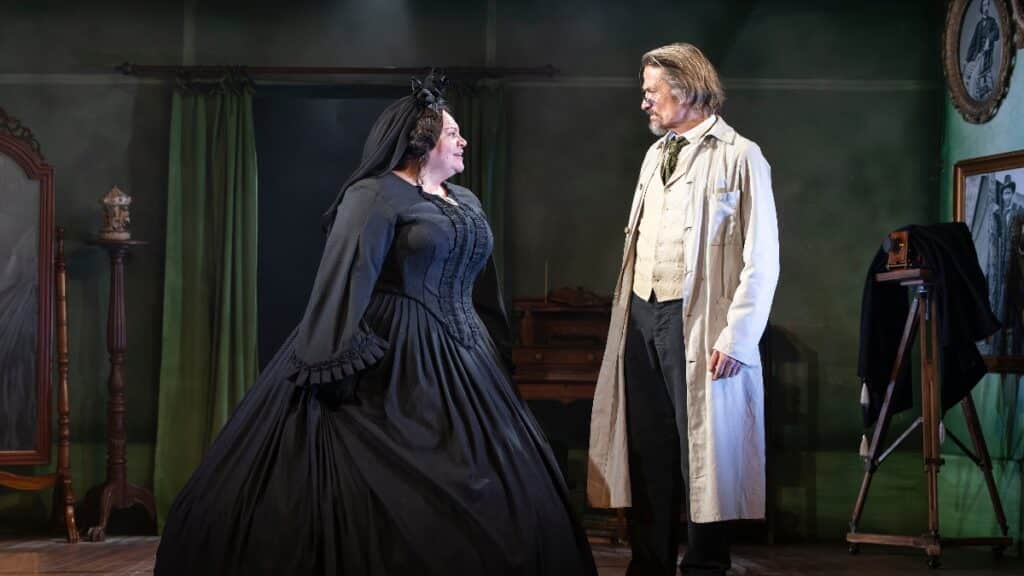 Beware of artists, warns playwright John Ransom Phillips. His Mary Lincoln has every reason to be cautious of his Matthew Brady – this is a man who wants to interpret her as his own artistic vision, not depict who she really is. This tussle between them is what drives Mrs President forward, as Mary tries to discover herself, and Brady tries to create her. It’s the age-old tension between artist and muse, brought to an unexpected stage.